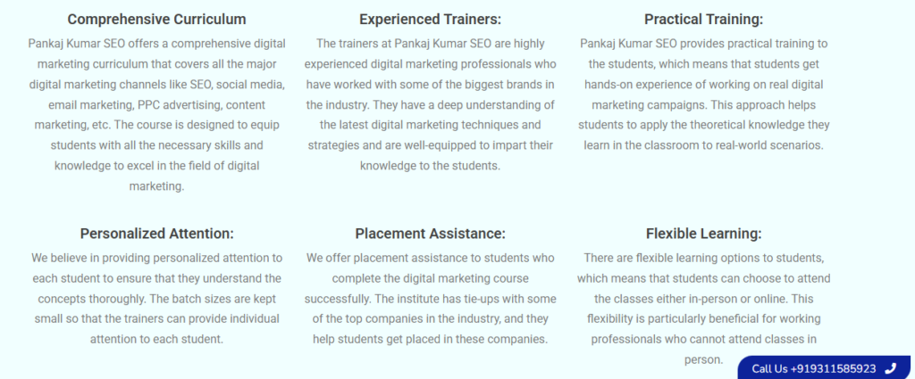 Pankaj Kumar SEO Expert is considered to be the most proficient provider of Digital Marketing classes to every category of the audience. Whether you are a student, housewife, entrepreneur or a working professional, Pankaj Kumar is going to give you the best practical knowledge. With plenty of live projects and commendable modules, you will get the right digital marketing training at the right time.